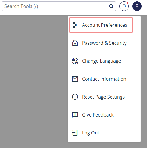 Kirjautumisen jälkeen voitte hallita cPanelin yleisiä asetuksia oiekalla yläkulmassa näkyvän tili kuvakkeen alta > Account preferences